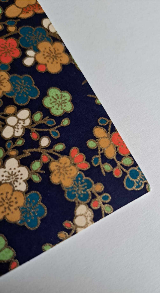 A5 Journal/Notebook (blank) - green cloth bound with stunning Japanese Chiyogami floral design front cover