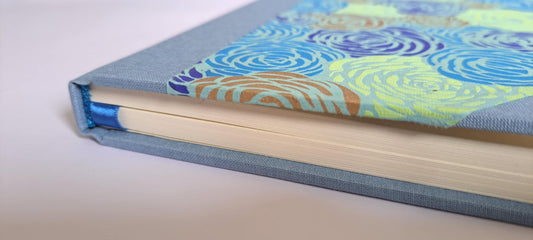 A5 Journal/Notebook (blank) - blue/grey cloth bound with turquoise and blue floral design front cover