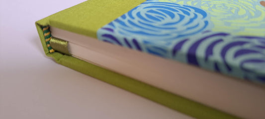 A5 Journal/Notebook (blank) - lime cloth bound with blue,turquoise and lime floral design front cover