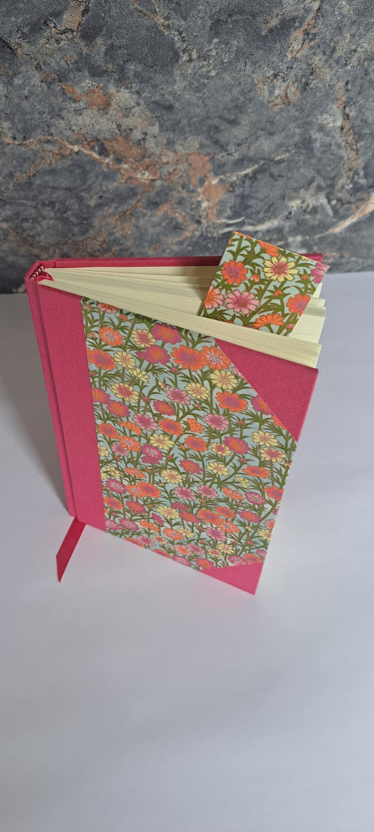 A5 Journal/Notebook (blank) - pink cloth bound with pink Japanese Chiyogami floral design front cover