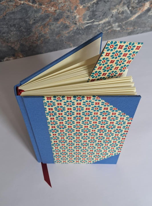 A5 Journal/Notebook (lined) - blue cloth bound with geometric floral design front cover