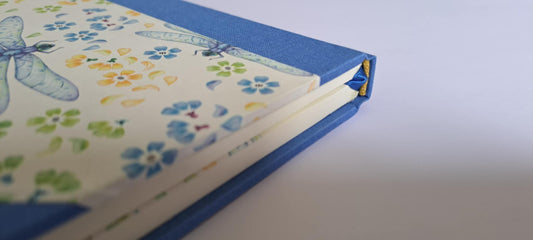 A5 Journal/Notebook (blank) - blue cloth bound with blue dragonfly design front cover