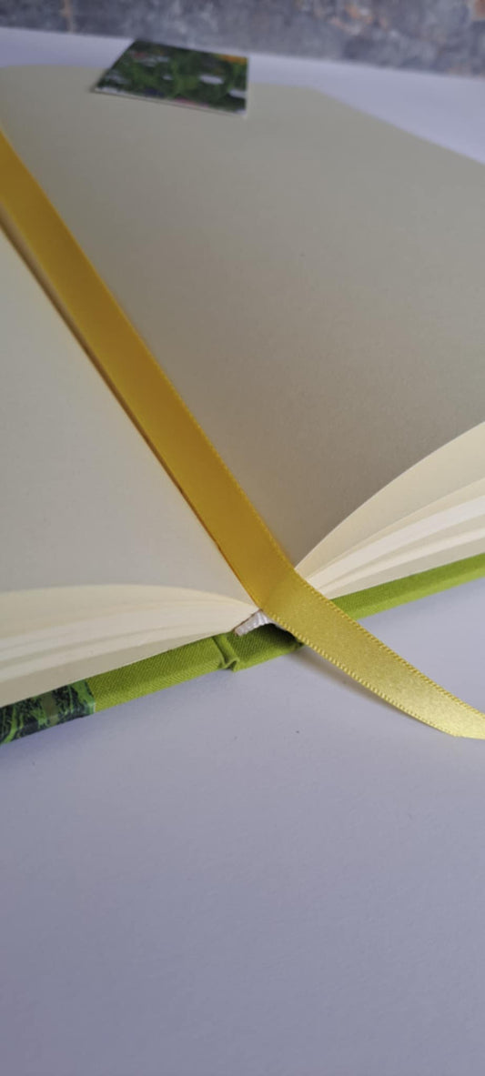 A5 Journal/Notebook (blank) - lime green cloth bound with eye-catching wildflower design front cover
