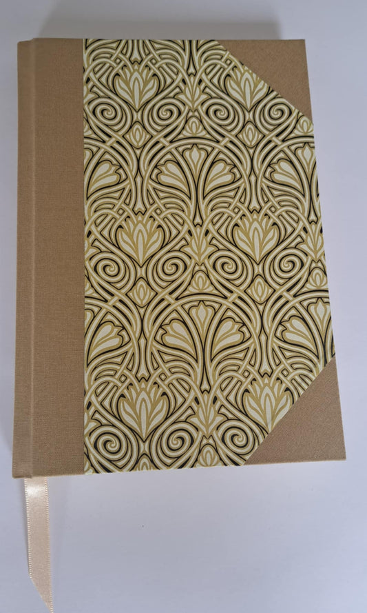A5 Journal/Notebook (blank) - taupe/beige cloth bound with gold art deco design front cover